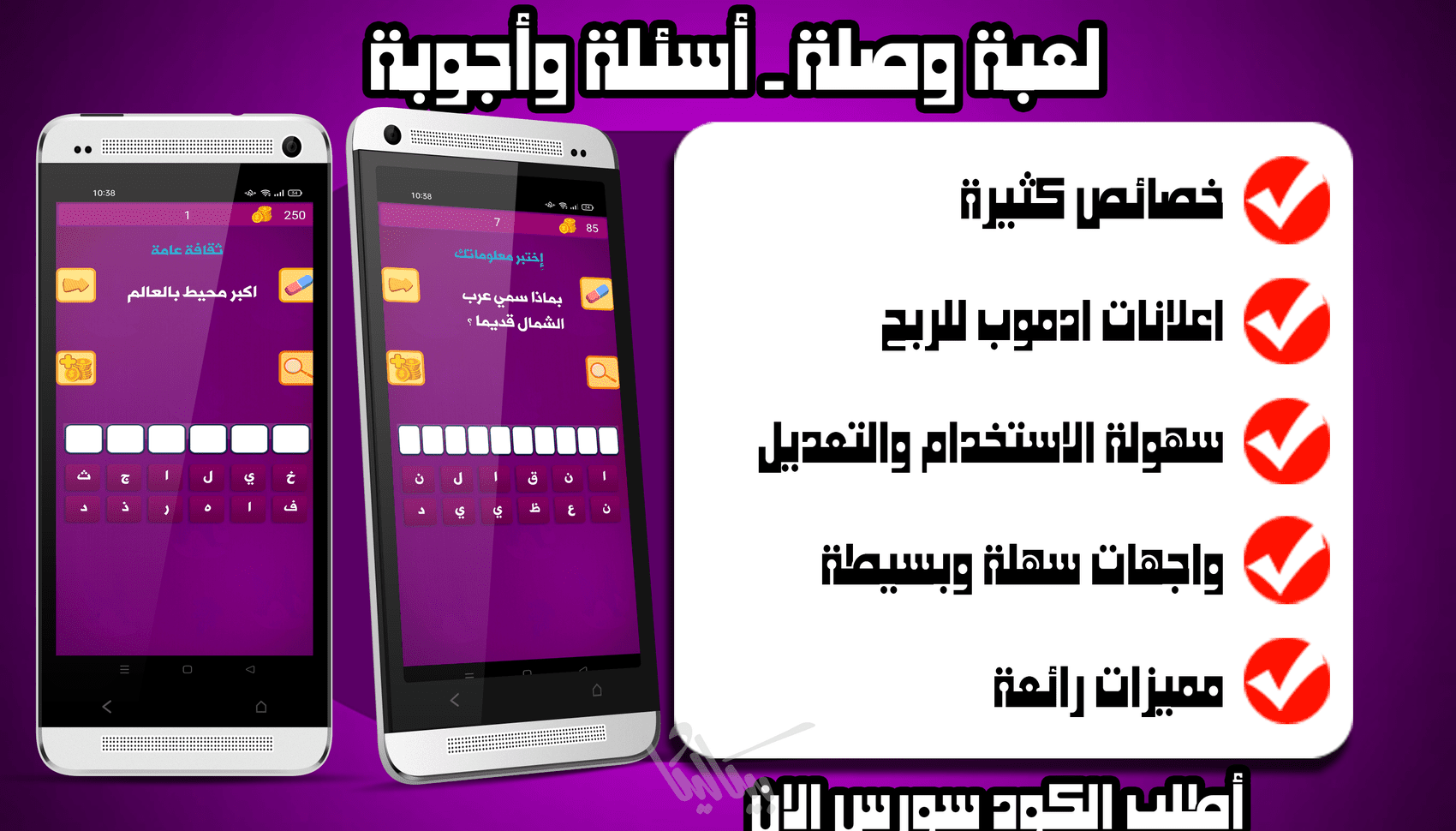 لعبة وصلة أسئلة وأجوبة هي لعبة احترافية من تطويرنا شبيهة بلعبة وصلة الشهيرة وبنفس طريقة اللعب