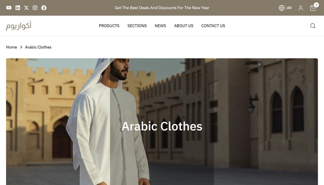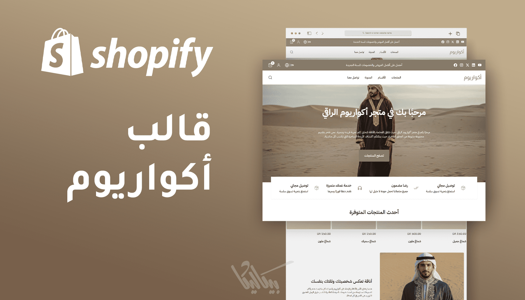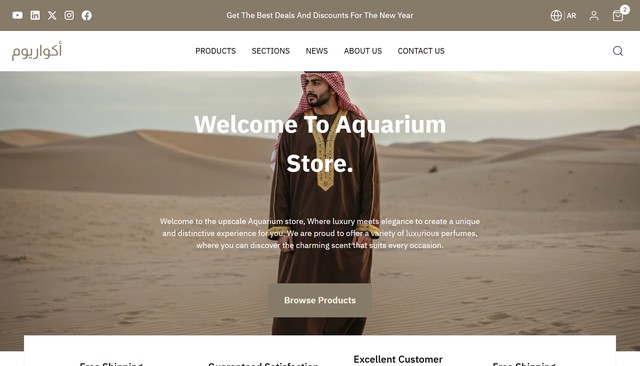 أكواريوم هو قالب شوبيفاي عربي لإنشاء المتاجر الإلكترونية، مرن وسهل الاستخدام ومتجاوب بشكل كامل. يحتوي على أكثر من 20 قسم متنوع بخيارين للهيدر وبخيارات تخصيص متعددة، يدعم تعدد اللغات والاتجاهين RTL و LTR.