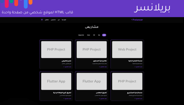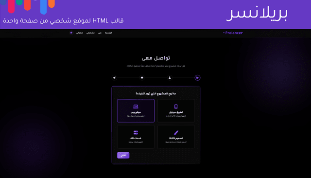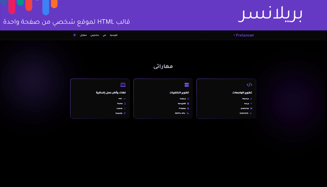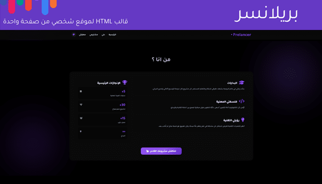 بريلانسر - Prelancer هو قالب HTML لموقع شخصي تعريفي من صفحة واحدة، يتميز بتسعة ألوان عصرية ويدعم اللغتين العربية والانجليزية.