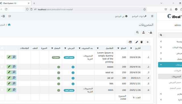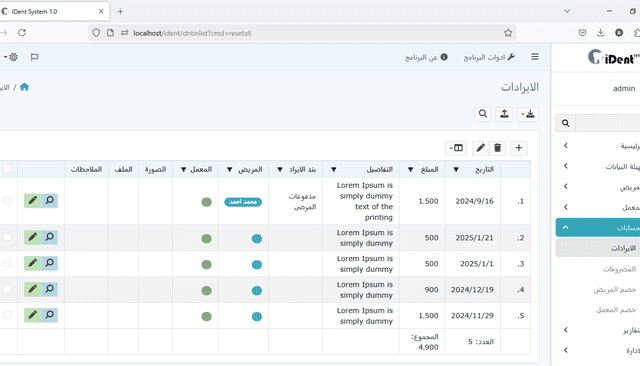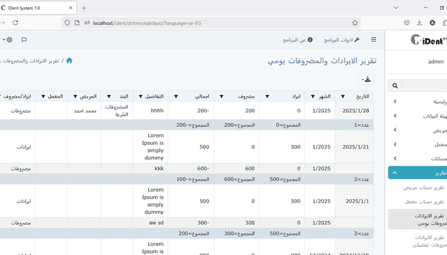 ملخص يومي لإيرادات ونفقات العيادة، مما يساعدك على البقاء على اطلاع على الأداء المالي اليومي للعيادة.