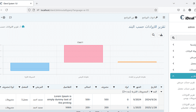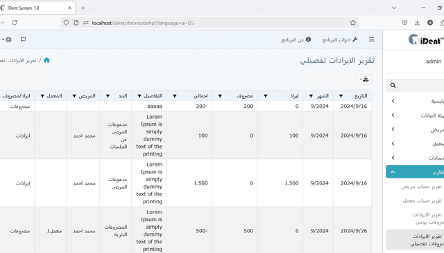 تقرير الإيرادات والمصروفات حسب المريض