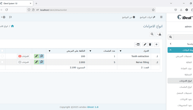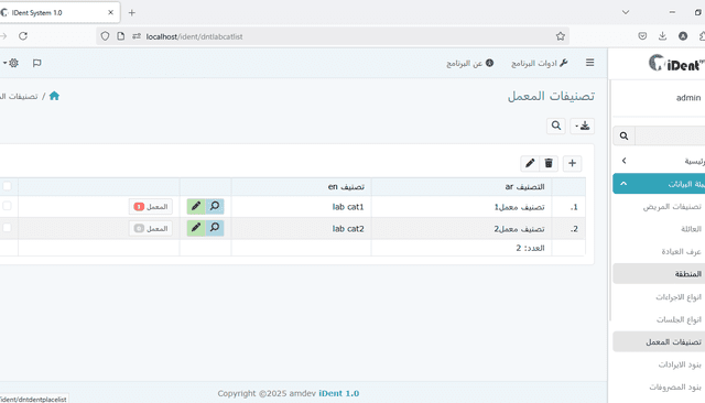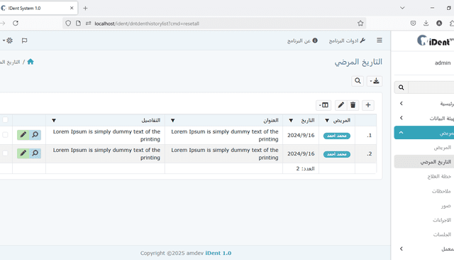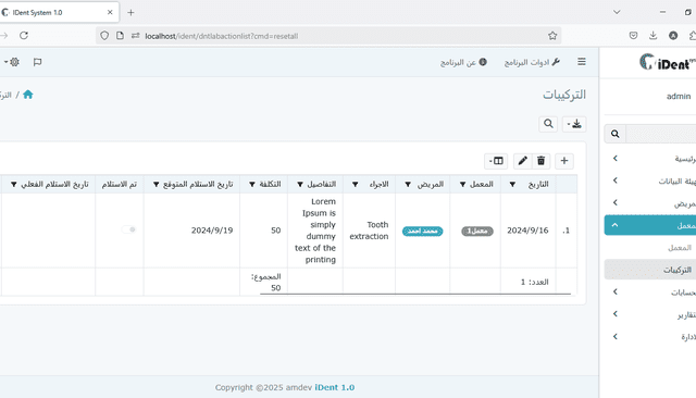 إدخال بيانات المريض والمعمل: يمكنك إدخال معلومات المريض وإدارتها بسهولة مثل التفاصيل الشخصية وتاريخ العلاج والسجلات الطبية. وبالمثل، إدارة معلومات المختبر مثل الخدمات المقدمة وأسعار علاجات واختبارات الأسنان المختلفة.