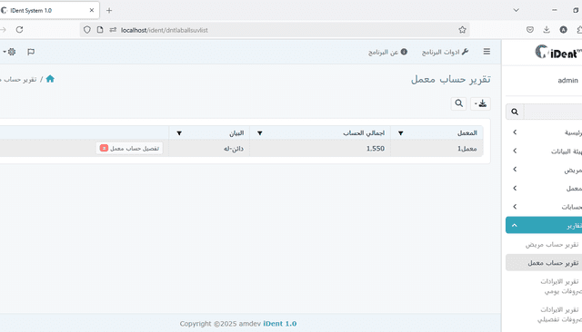 يعرض الإيرادات والنفقات المخصصة لأنشطة المختبر على وجه التحديد، مما يتيح لك تقييم الأداء المالي للمختبر بشكل منفصل عن العيادة.