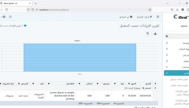 تقرير الإيرادات والمصروفات حسب المختبر