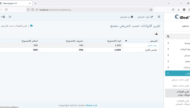 يجمع هذا التقرير بين بيانات الدخل والنفقات لكل مريض، مما يوفر صورة مالية شاملة لحساب كل مريض.