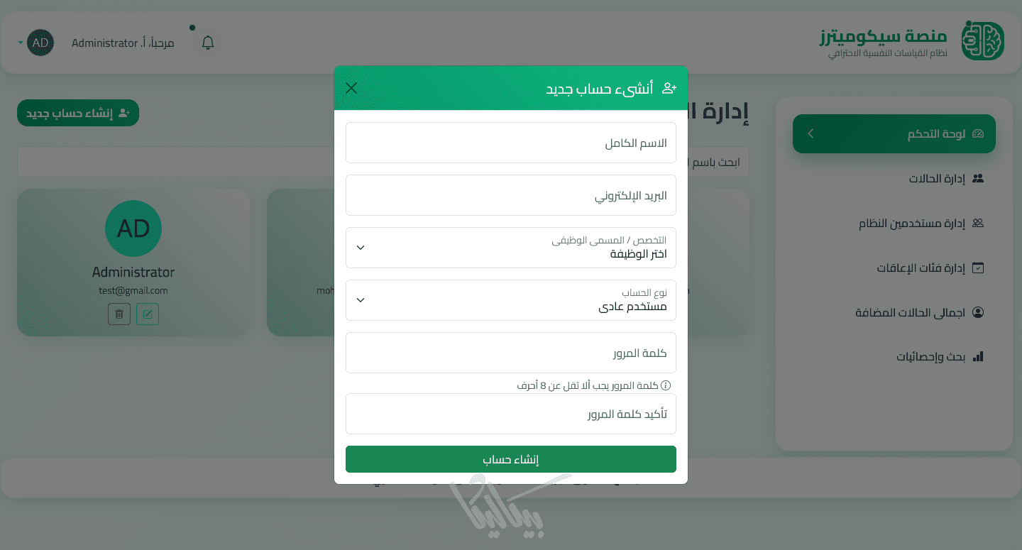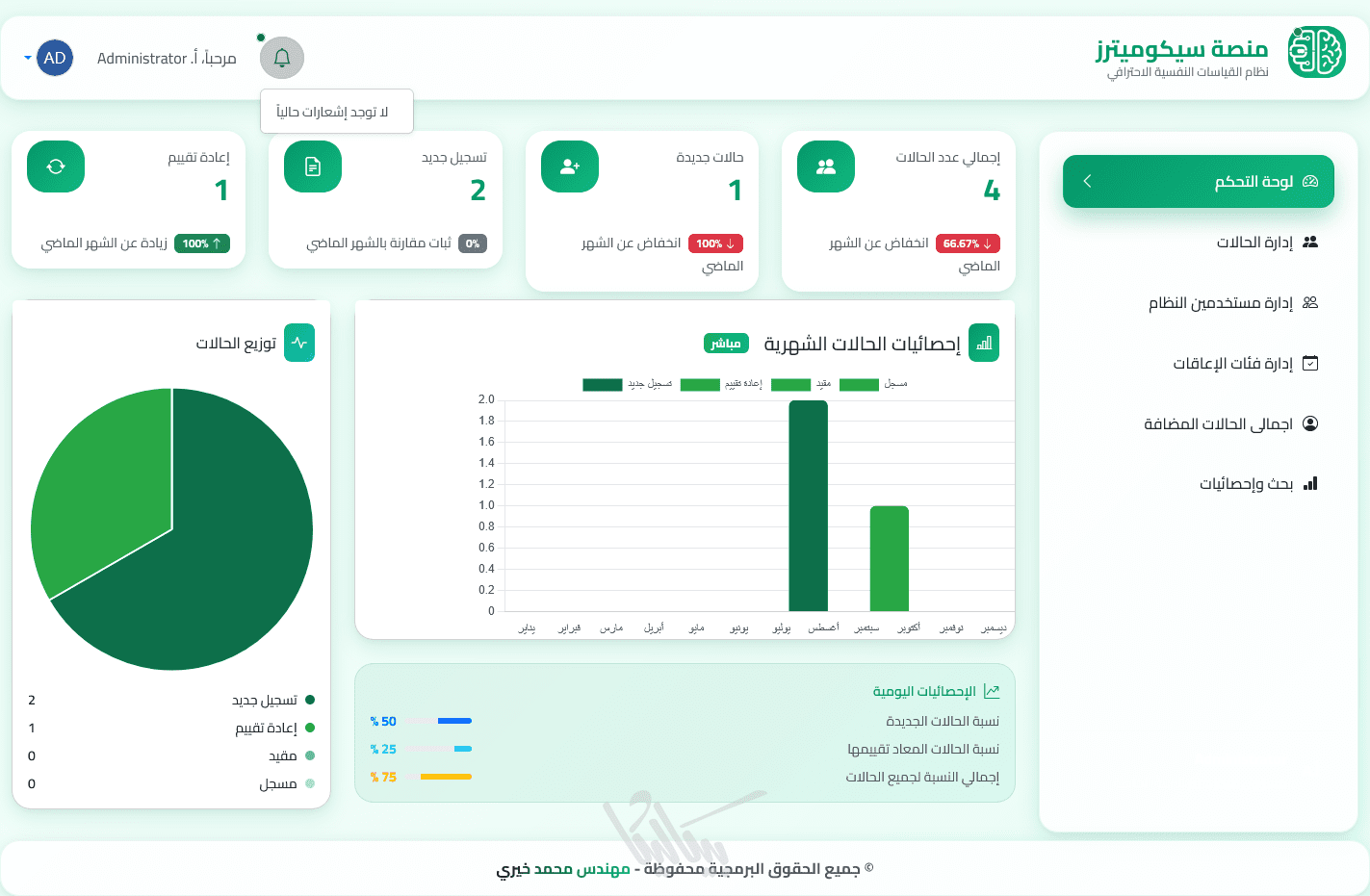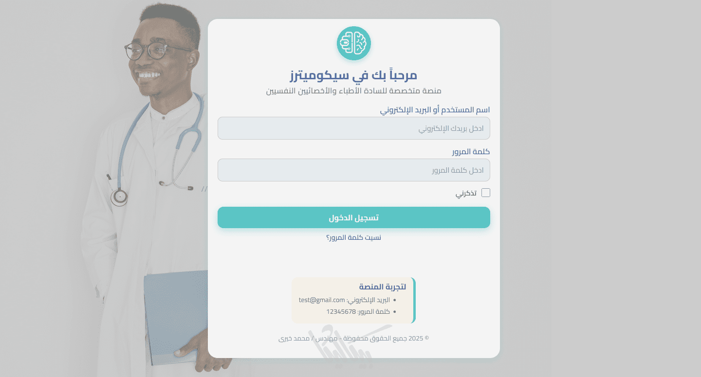 سيكوميترز هو برنامج متكامل للتقييم النفسي والسلوكي والإعاقات، يشمل: نظام متكامل لإدارة المرضى، تسجيل البيانات الأساسية لكل مريض، إجراء التقييمات النفسية والسلوكية والمعرفية.، تقييمات النطق واللغة والإعاقة البصرية وكتابة التوصيات النهائية بعد الانتهاء من التقييمات.