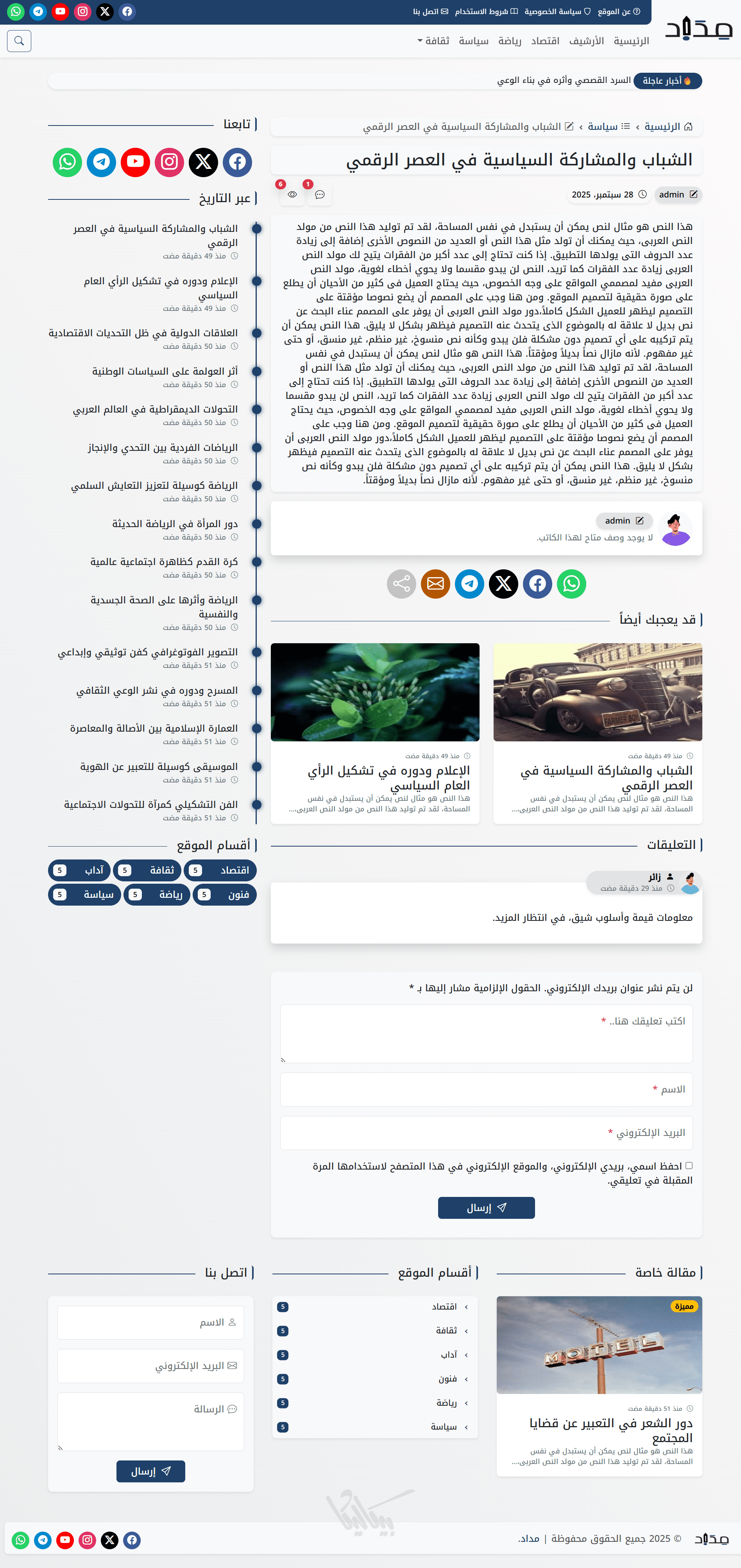 مِدَاد (Midad) هو قالب ووردبريس يجمع بين الأناقة والخفّة لمختلف الاستعمالات، تم تصميمه لتحقيق الأداء الأمثل مع تحسين الظهور على محركات البحث (SEO)، يتميز بتصميم حديث ومتجاوب ويعمل بشكل مثالي على جميع الأجهزة، تم بناء القالب وفقًا لأفضل الممارسات لضمان سرعة التحميل وتجربة مستخدم ممتازة.