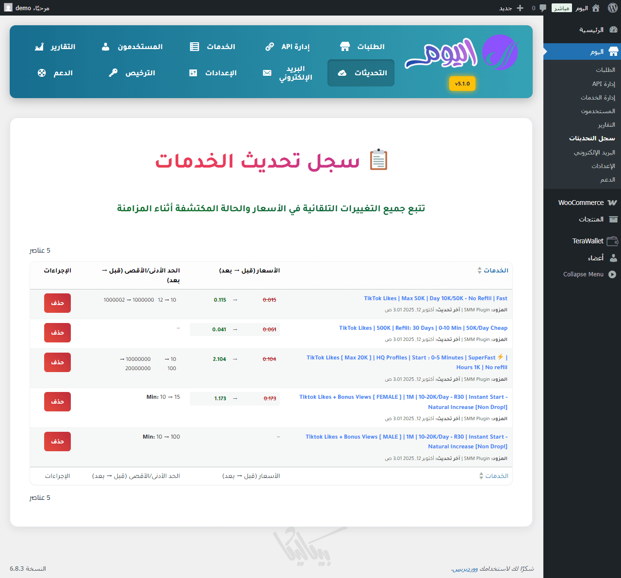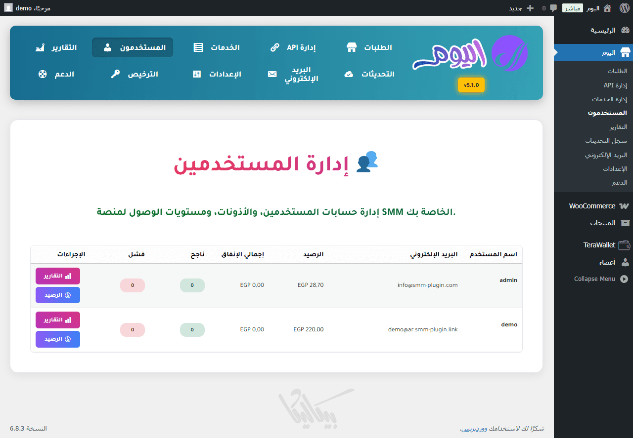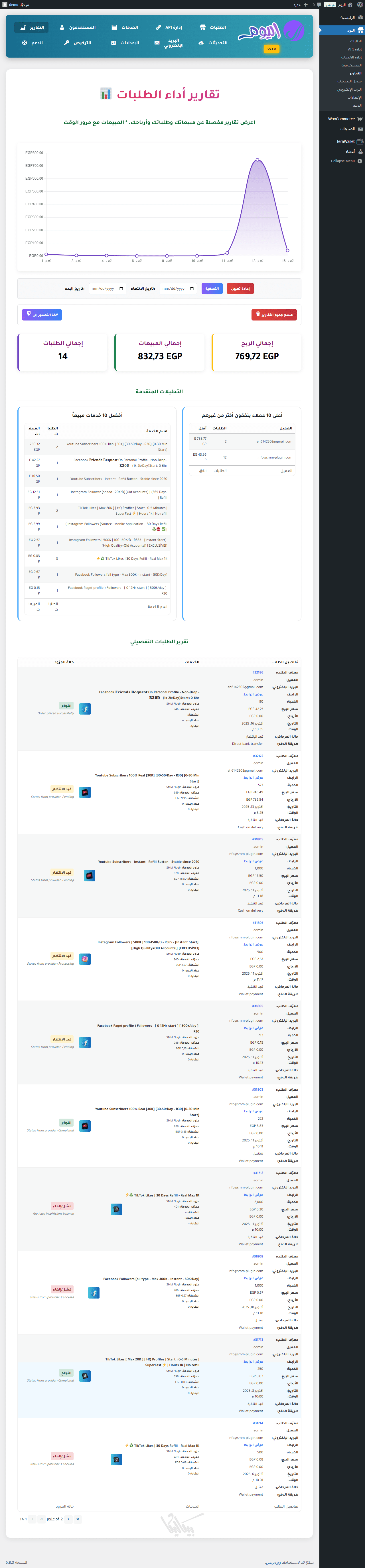 إضافة اليوم هي أداة متقدمة لإدارة وبيع خدمات السوشيال ميديا داخل ووردبريس. تمكنك من تحويل موقعك إلى لوحة تحكم كاملة لإدارة الطلبات، الموردين، والأسعار دون الحاجة لأي أكواد.