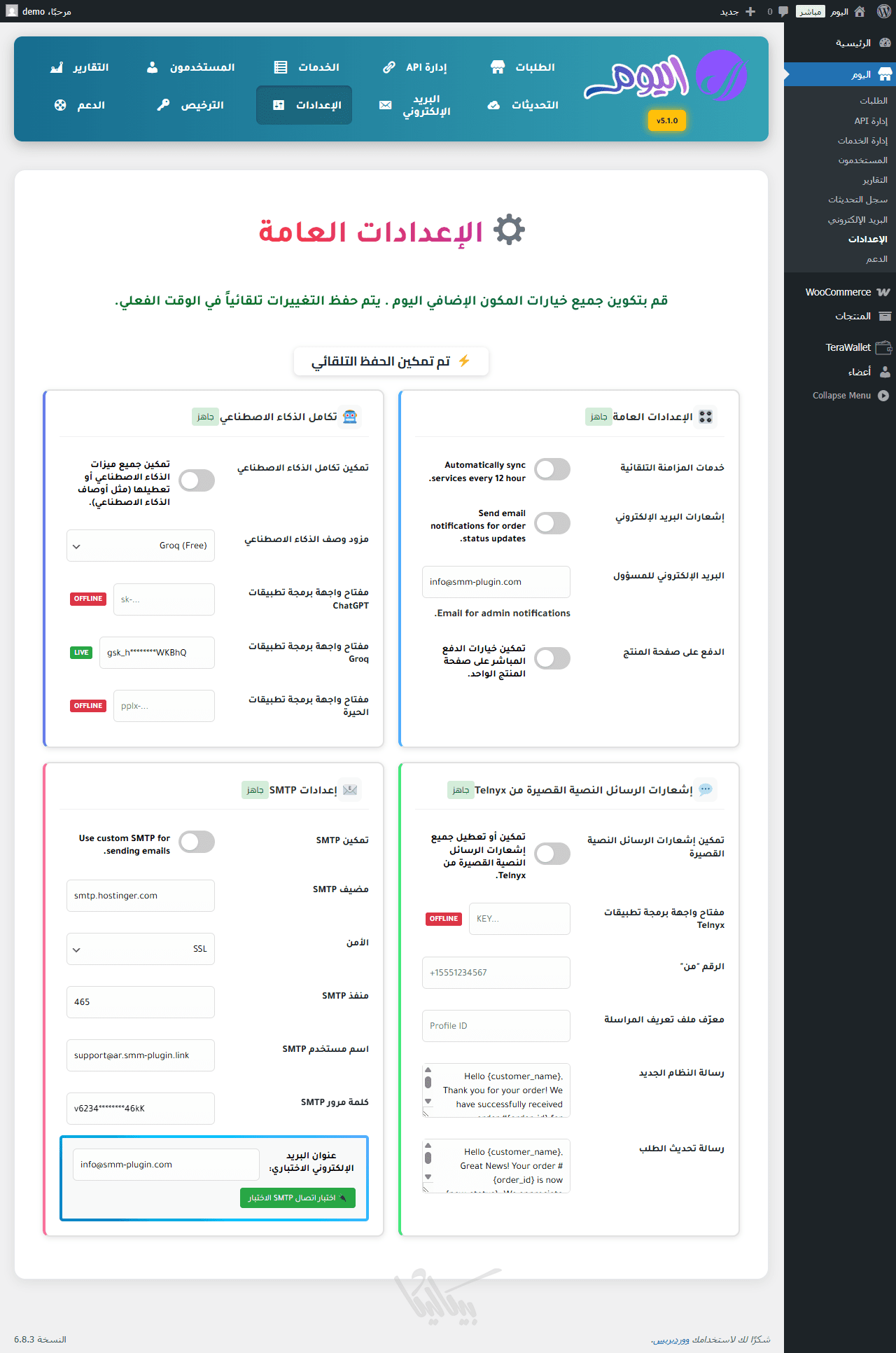 تتميز الإضافة بواجهة استخدام منظمة وسريعة، وتدعم أحدث إصدارات ووردبريس وووكومرس لضمان الأداء والاستقرار.