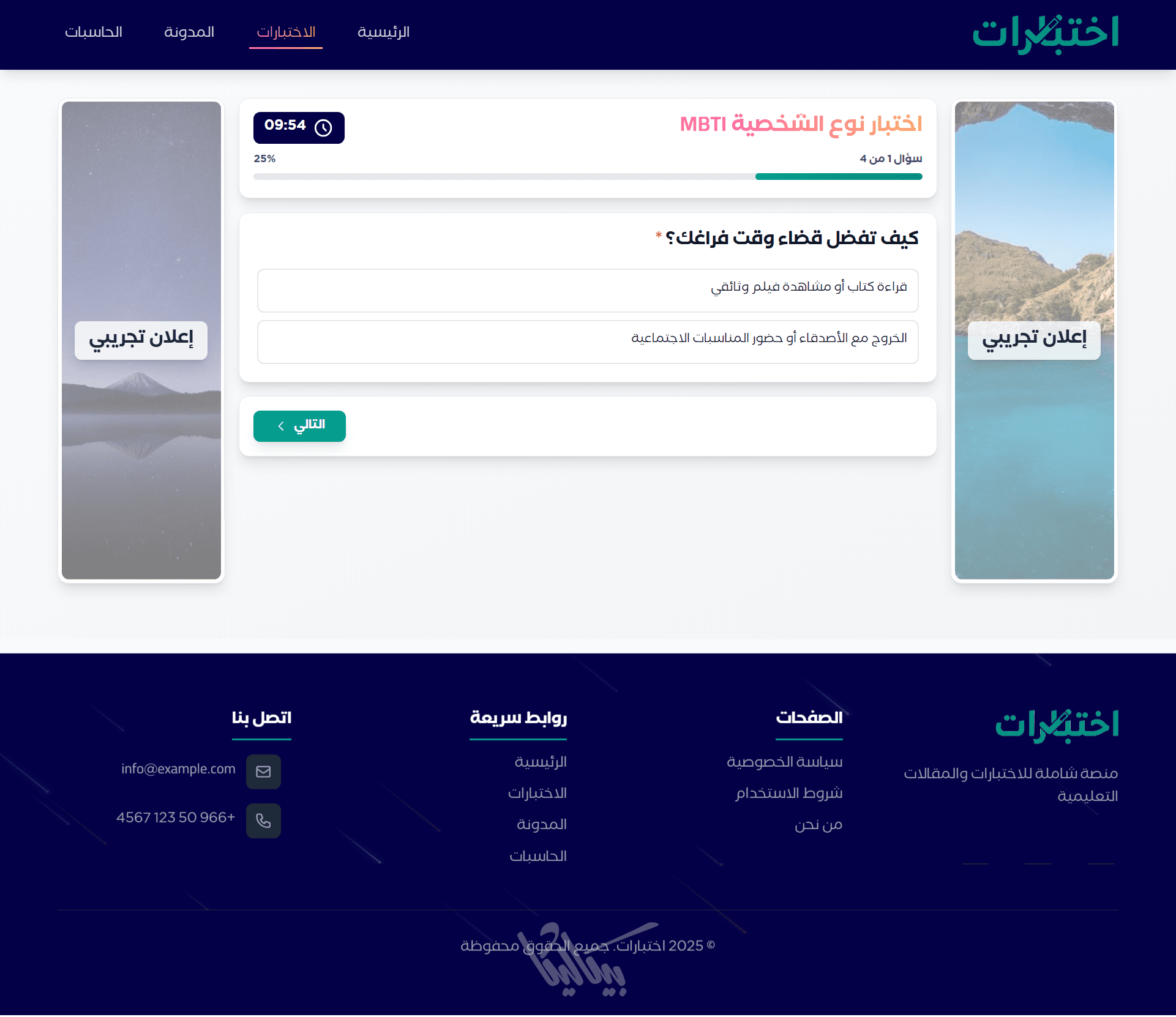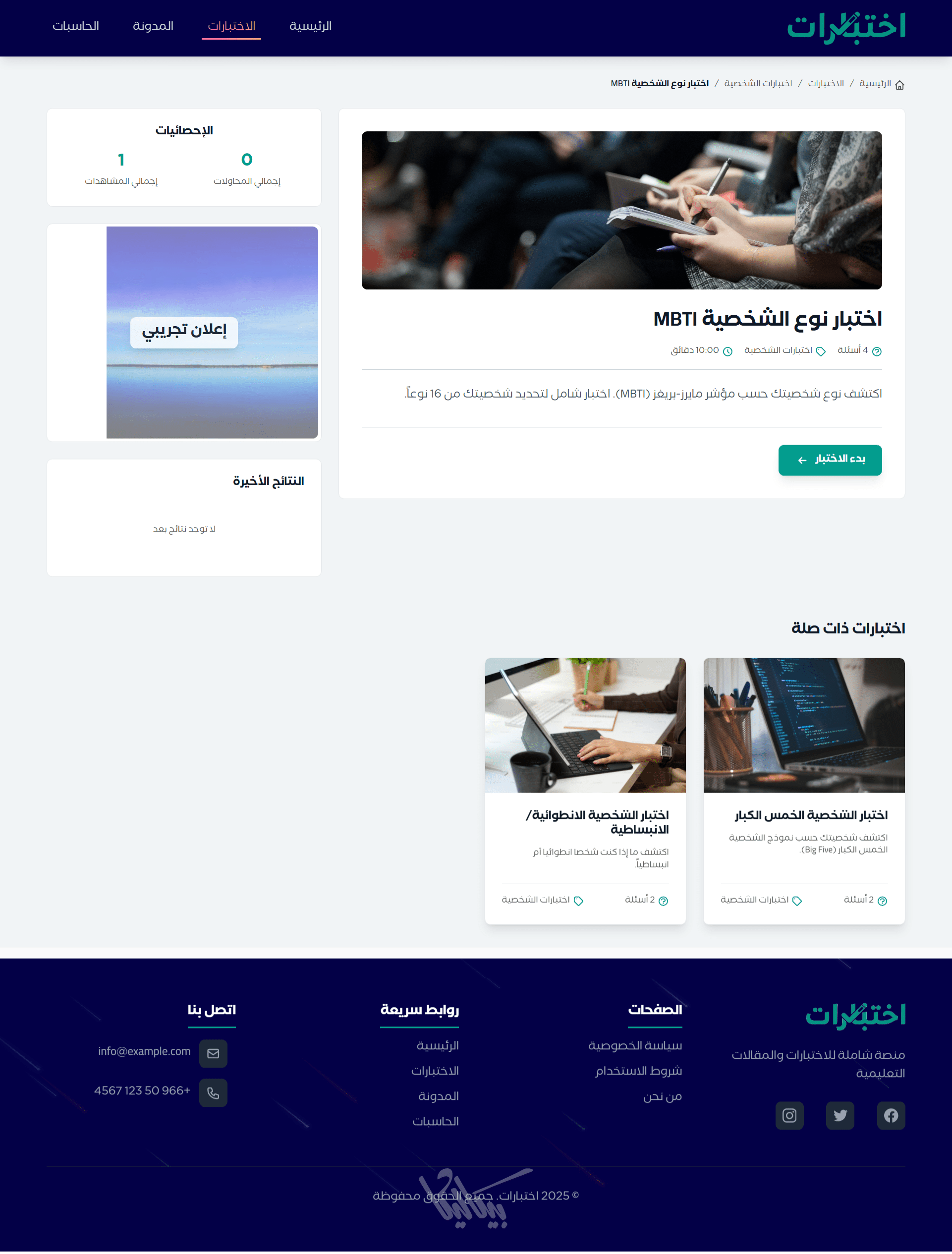 ارسال نتيجة الاختبار بالبريد الإلكتروني او عرضها بشكل مباشر لمن يرغب بإنشاء قائمة بريدية مميزة