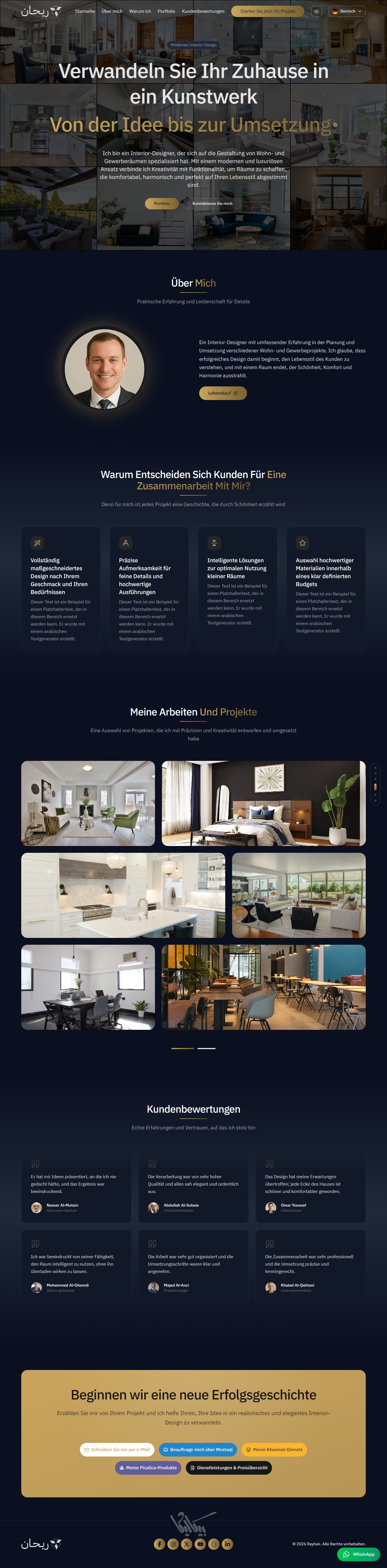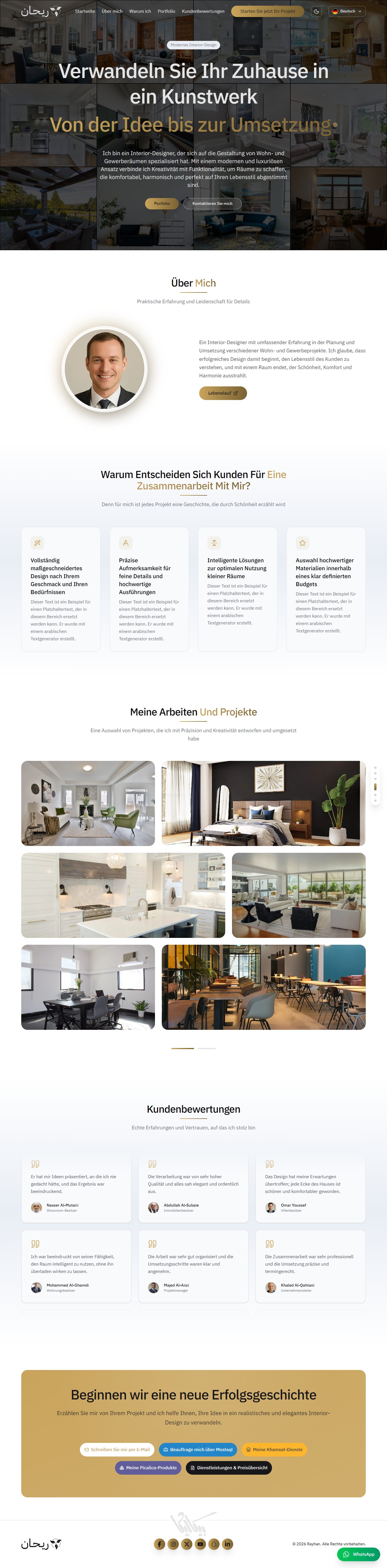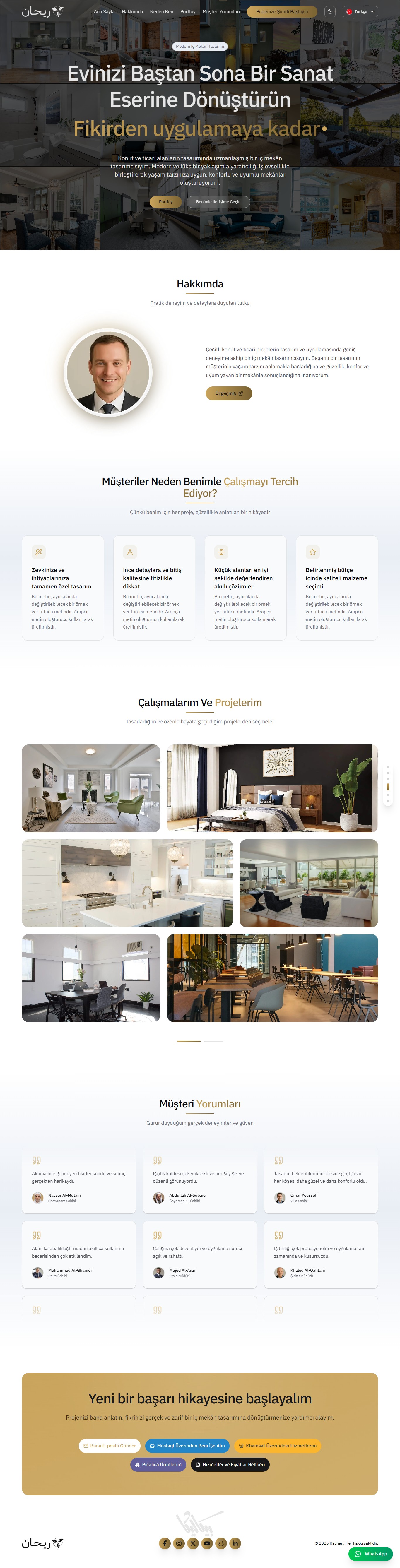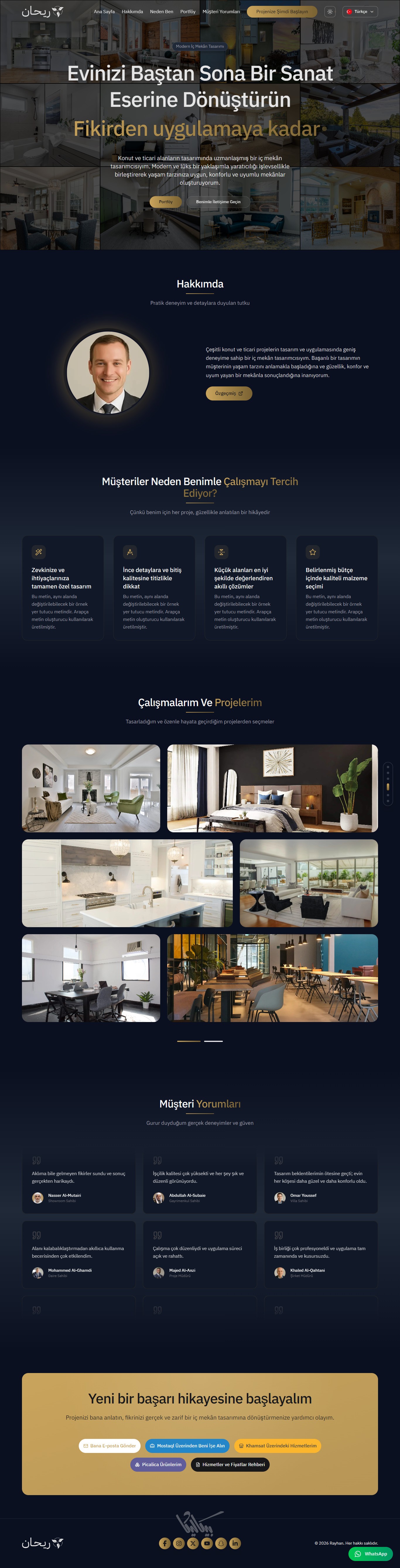 ريحان هو قالب صفحة هبوط (Landing Page) متكامل وعصري، مُصمم خصيصاً للمبدعين الذين يرغبون في عرض مشاريعهم بأسلوب تقني واحترافي، ,وإنشاء بورتفوليو يعبّر عن مهاراتهم. يوفر القالب واجهة مستخدم انسيابية مع لوحة تحكم شاملة تغني عن تعديل الكود يدوياً.