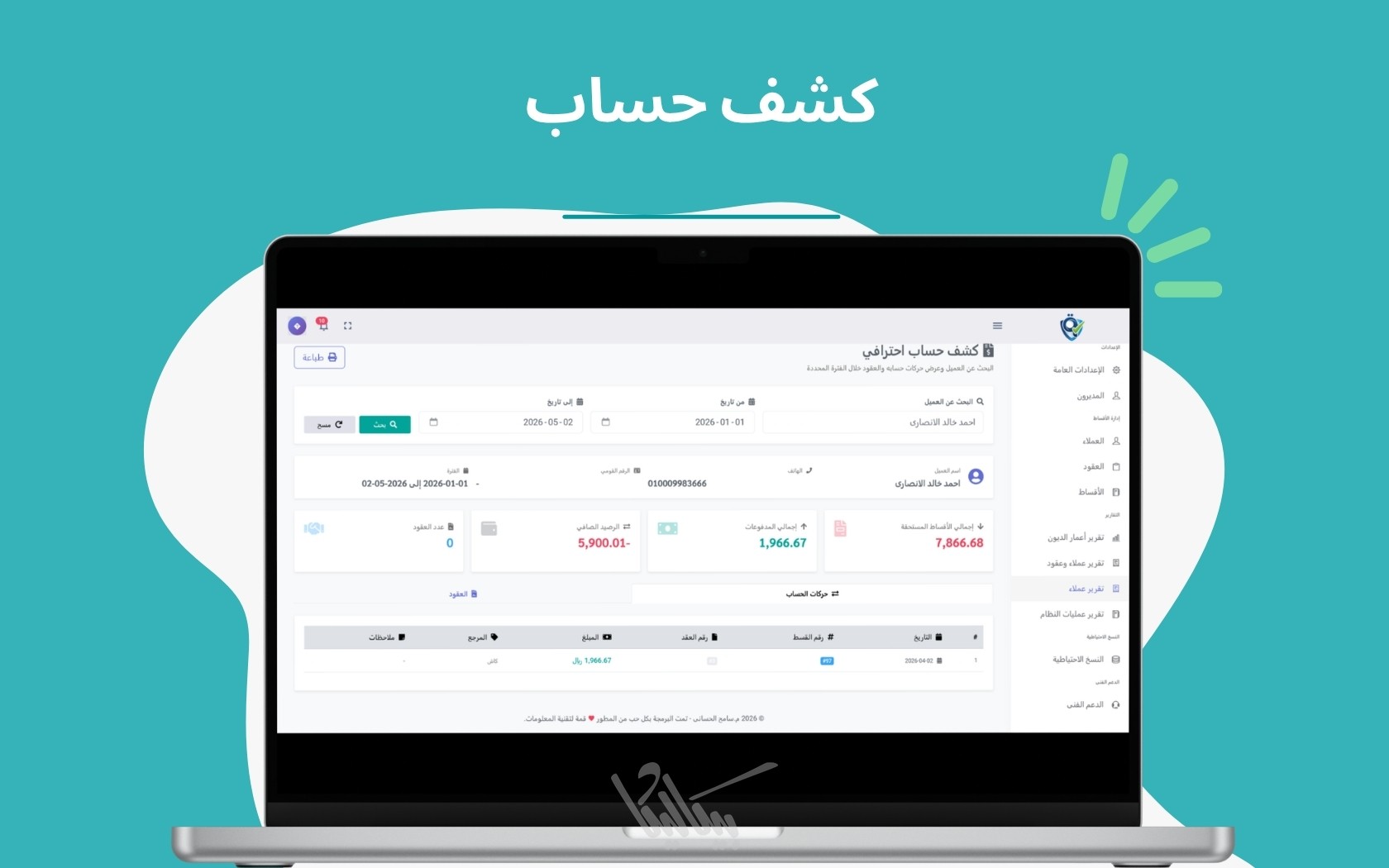 قسط كنترول - نظام متكامل لإدارة العقود والأقساط بسهولة واحترافية