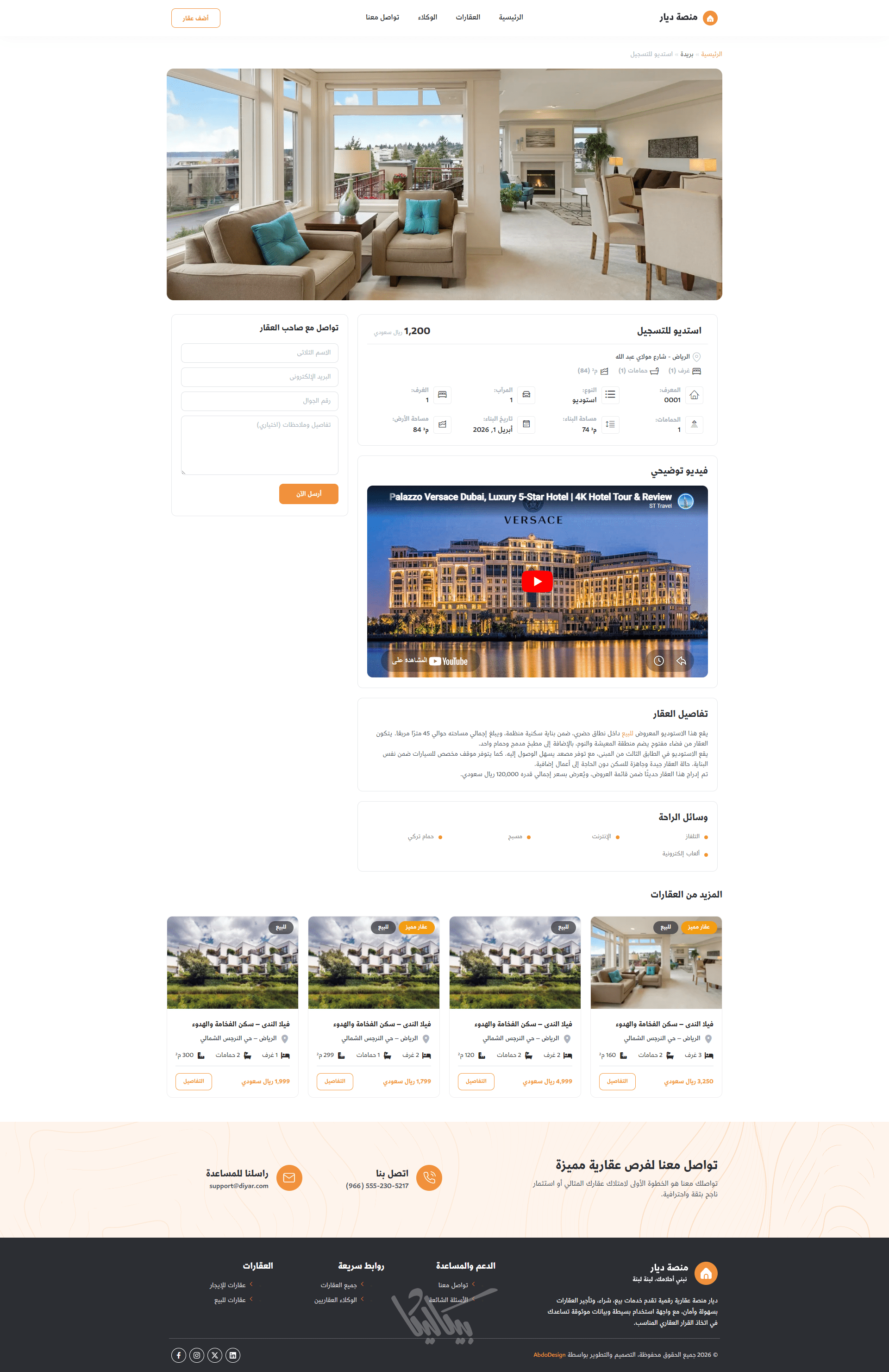 سواء كنت شركة عقارية، وسيط، أو مطور، فإن ديار هو الحل الأمثل لبناء حضور رقمي قوي وعرض عقاراتك بأفضل صورة ممكنة.