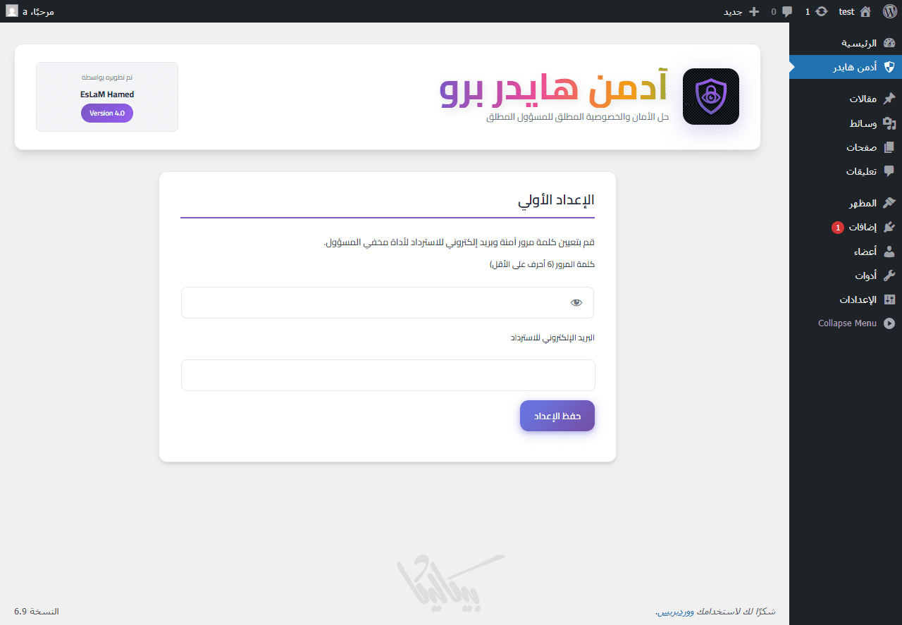أدمن هايدر برو - إضافة إخفاء القوائم وتأمين لوحة تحكم ووردبريس